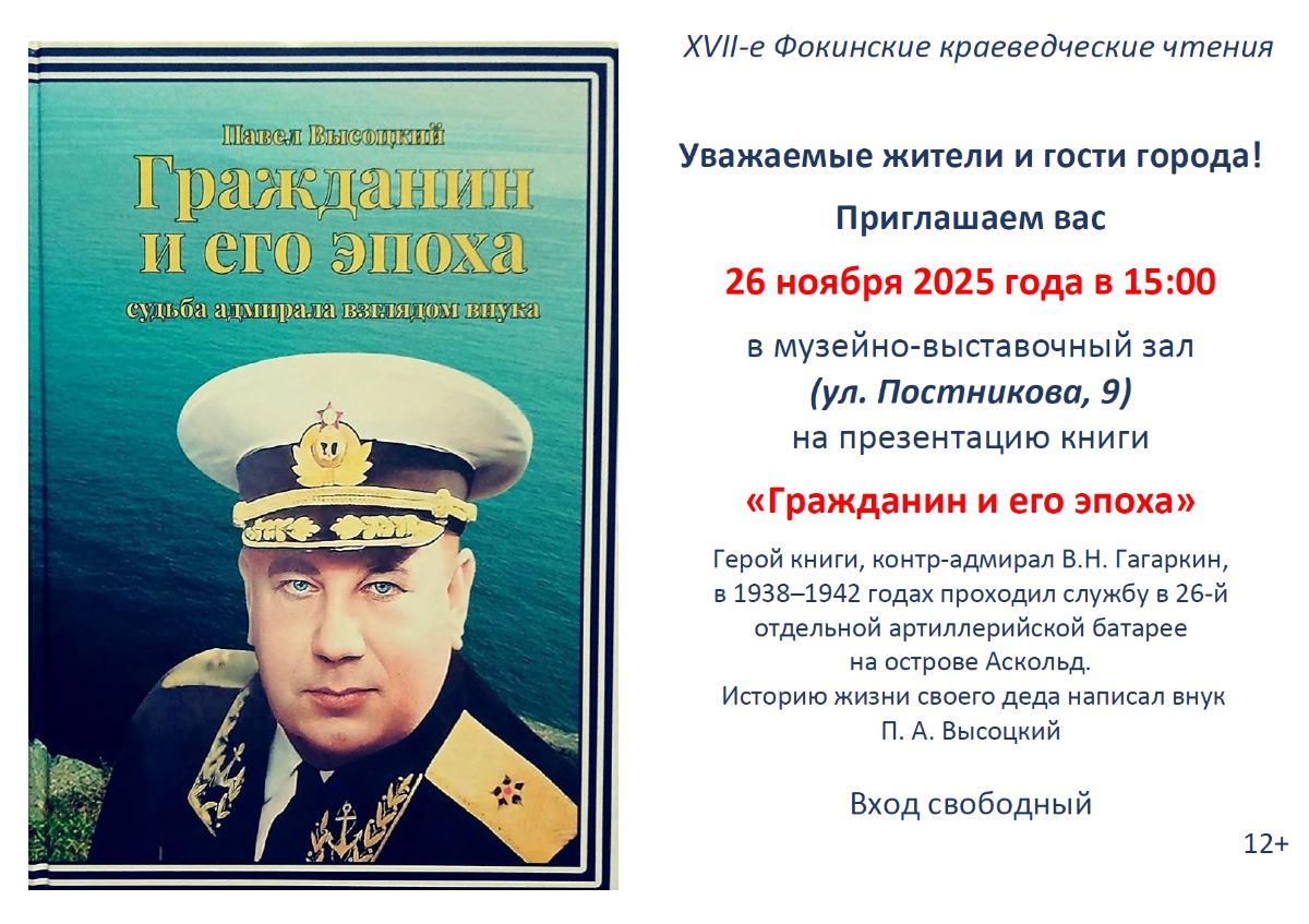 26 ноября в музейно-выставочном зале Центральной городской библиотеки А.Д.Старцева состоялись Семнадцатые Фокинские краеведческие чтения, посвященные презентации книги Павла Высоцкого "Гражданин и его эпоха: судьба адмирала взглядом внука".